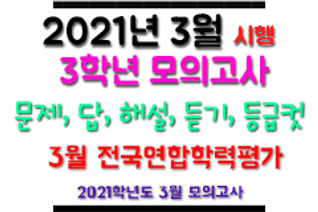 2021년 3월 23일 시행 2021학년도 3월 고1 전국연합 학력평가 기출 문제지 정답해설지 확정등급 듣기파일 안녕하세요 레전드스터디 닷컴. 모의평가 문제 및 정답. 필요하신 분들은 아래 첨부파일을 다운받아 사용하세요.
